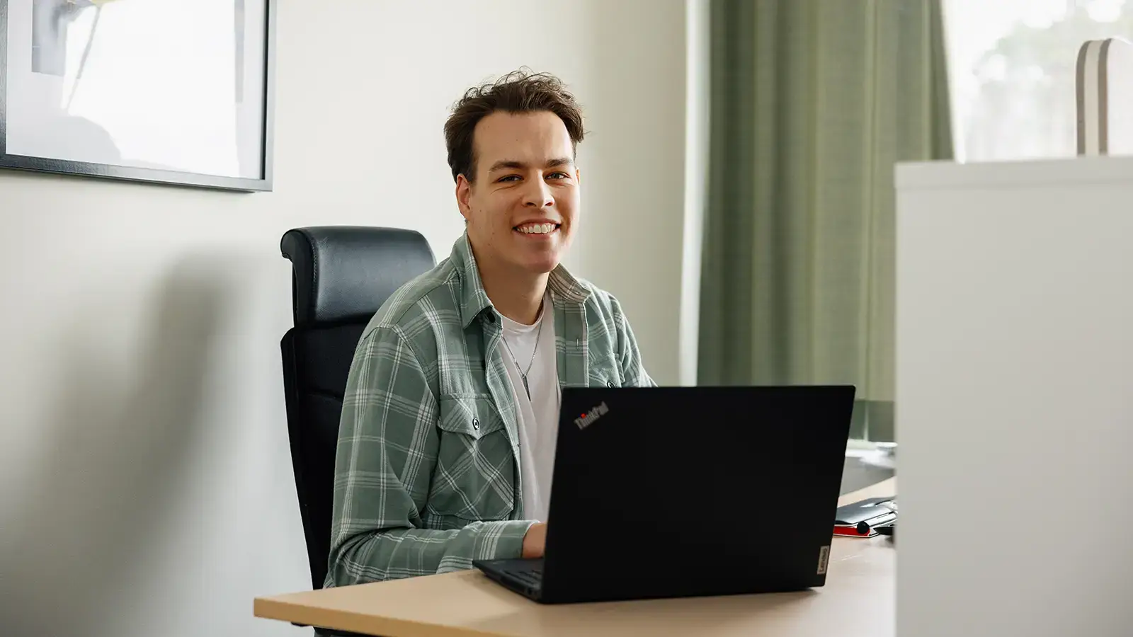 Robin Petersson, 25 år, är glad över beskedet från Holtab. Efter sin avslutade yrkesutbildning Cloud- och infrastrukturspecialist kommer han att ha fast anställning hos Holtab.