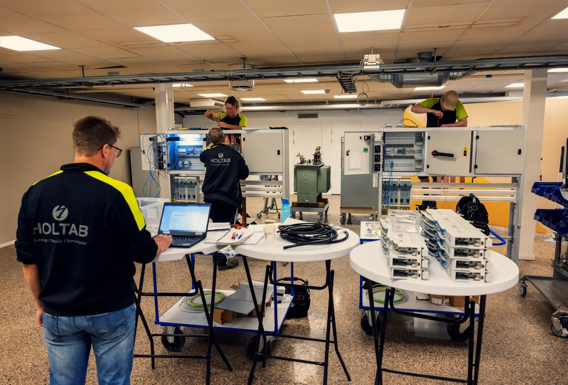 Holtab startar ett utbildningscenter i Olofström. Här övar företagets elmontörer på att montera ställverk och bygga upp sin skicklighet i testmiljö.