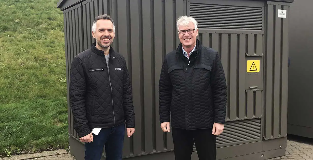 Elbolaget SE kommer att använda stationerna från Holtab när det danska elnätet ska byggas ut. Danska Evonet, som är SE:s elnätsbolag, berättar att de är nöjda över att samarbetet fortsätter. – Vi har utvecklat ett bra koncept för transformatorstationer där fokus ligger på plug- and playlösningar, livslängd och design. Holtab har ansträngt sig för att hitta lösningar som både klarar av ett tufft klimat och är användarvänliga för våra tekniker på fältet. Därför är vi glada för att fortsätta samarbetet, säger Søren Larsen som är koordinator på Evonet. På bilden ovan syns Søren Larsen som är koordinator på Evonet (t v) tillsammans med Holtabs Ebbe Klarskov (t h).